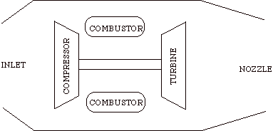 Schematics of typical military gas turbine engine: J57 turbojet with afterburning..