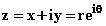The variable z, z = x + iy can be represented by its length and angle as can any two dimensional vector, and the relation as usual is