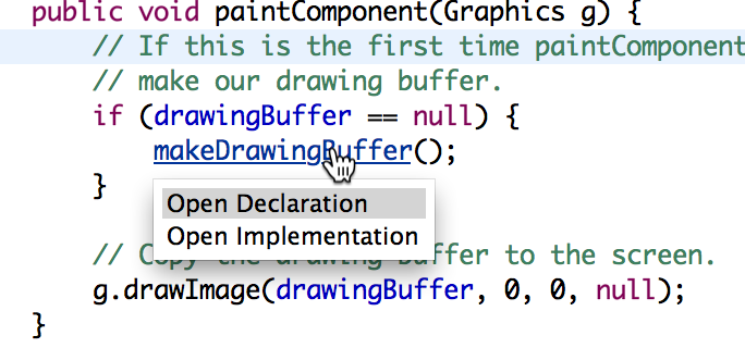 Command-click (on Mac) or control-click to jump straight to the definition of a variable, field, method, class, etc.