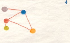 The visualization of the conversation is a series of 12 images sketched on tracing paper. The visualization is a transition over time as well as space. Each participant of the conversation is denoted by a dot of a different color. Any verbal exchange that heppened between two participants is shown by a red line between the two. The dots denote the participants and their respective positions to each other. For the best analysis, the 12 images should be seen as stacked together in real life(in class tomorrow). Stacking all the images gives an idea of the density of space occupied by the particpants and density of conversation(concentration of red lines) over time. If the same process was done digitally by changing the opacity of the participants at each level and then superimposing all the imges, the effect would have been more observable.