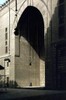 The Madrasas of Sultan Hasan: (1356-61) The most magnificent of all Cairene structures, this four-iwan, four-madrasa structure stands across from the Citadel. The mausoleum is right on the qibla axis of the mosque, which represents a significant shift in planning and symbolism. The huge portal is oriented to impress the viewer coming from the Citadel. The minarets mark the beginning of the line of development of the 3-tiered Mamluk minarets. This monument has alone inspired so many copyists and imitators of its architecture until the twentieth century, and induced inperpreters to see in it a symbol of the political dichotomy of the time, or a representation of the humbling effect of the Black Death, or even a diagram of the social hierarchy in the city of Cairo.