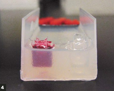 4. Once gel has solidified, remove Legos, tape and add DNA with glycerin/red food coloring. (Courtesy of Make Magazine. Used with permission.)