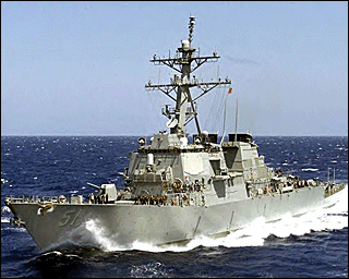 USS Arleigh Burke off the U.S. Atlantic coast. This ship is the focus of some of the laboratory projects. (U.S. Navy photo by Photographer's Mate 3rd Class Aaron J. Lebsack; photograph is in the public domain.)